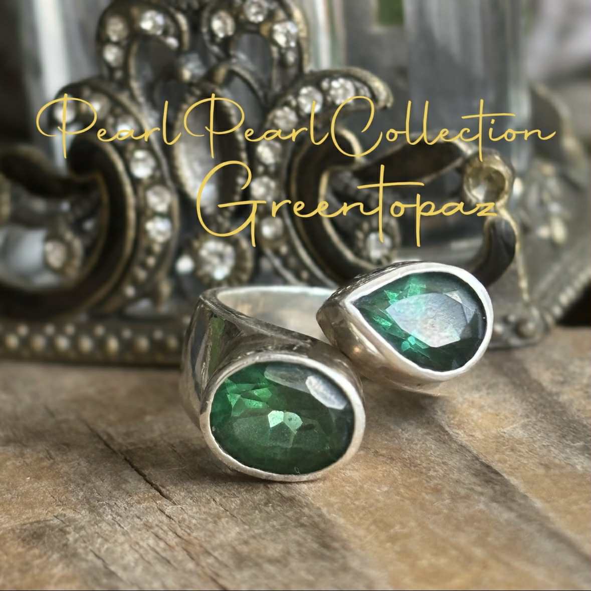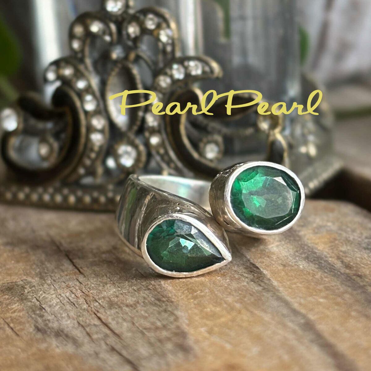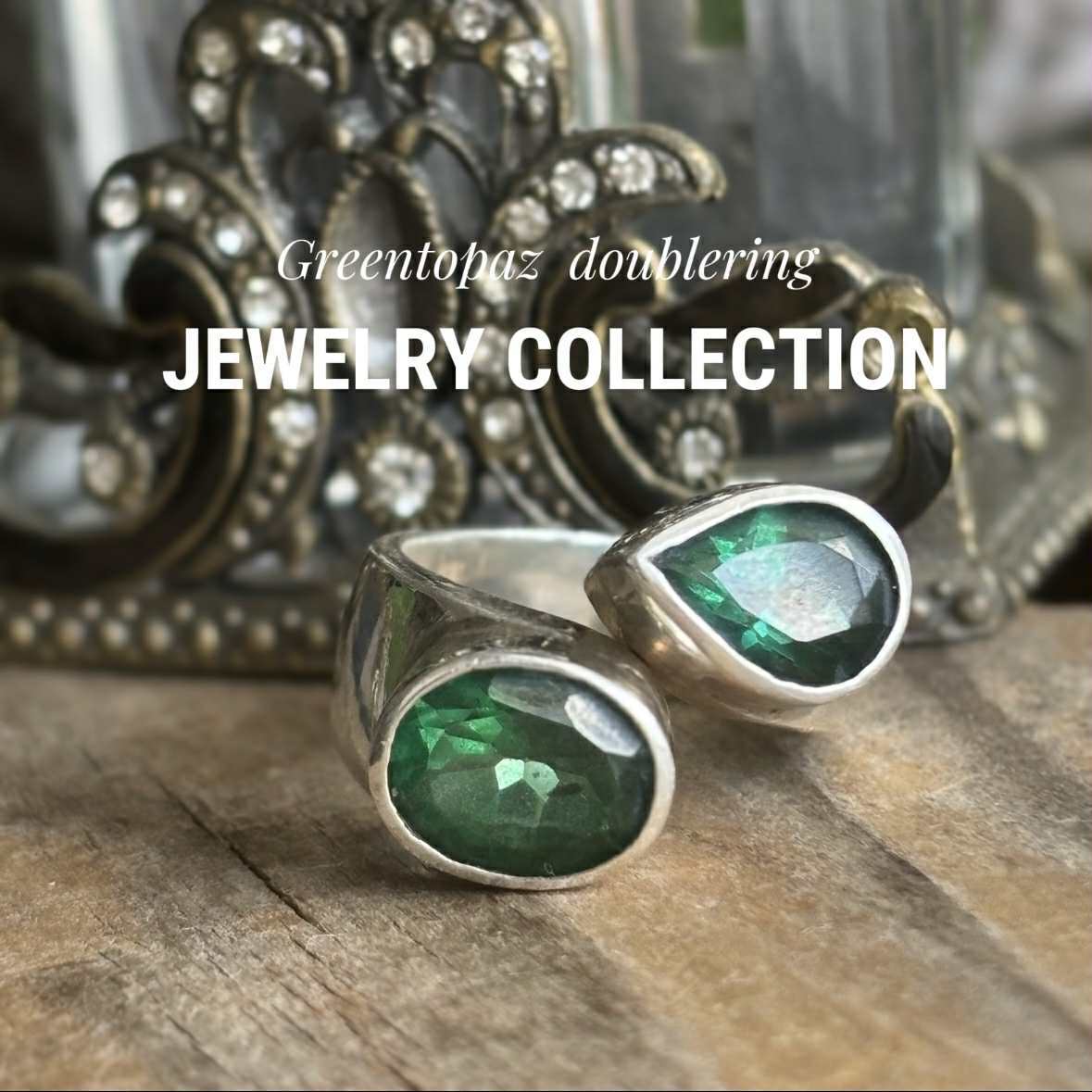 まるでエメラルドのよう*「癒しの石」グリーントパーズダブルリング