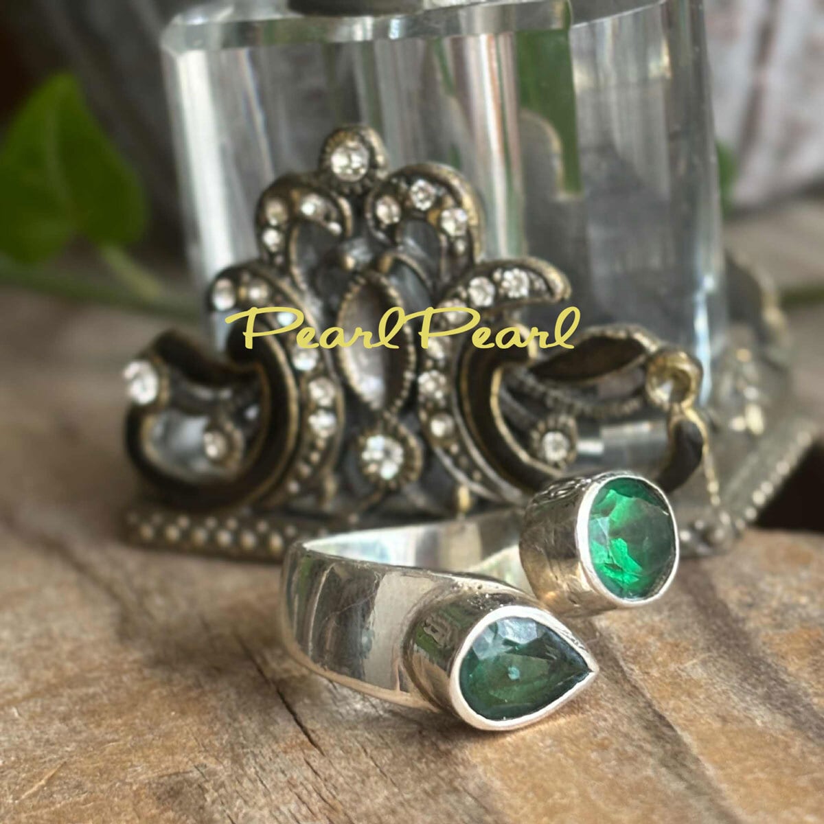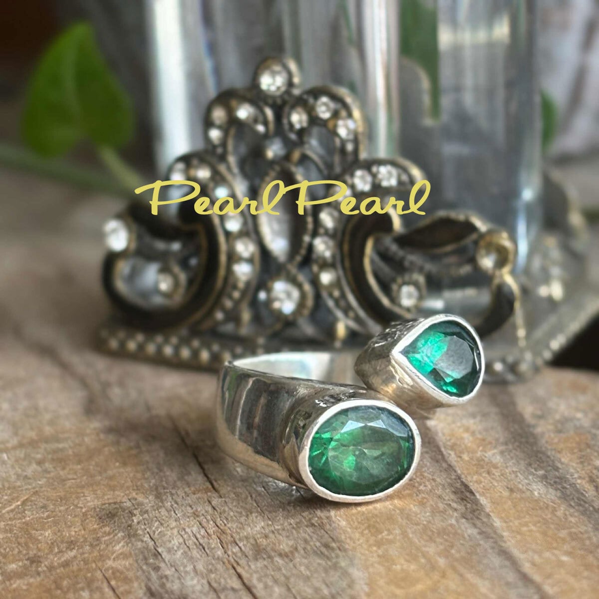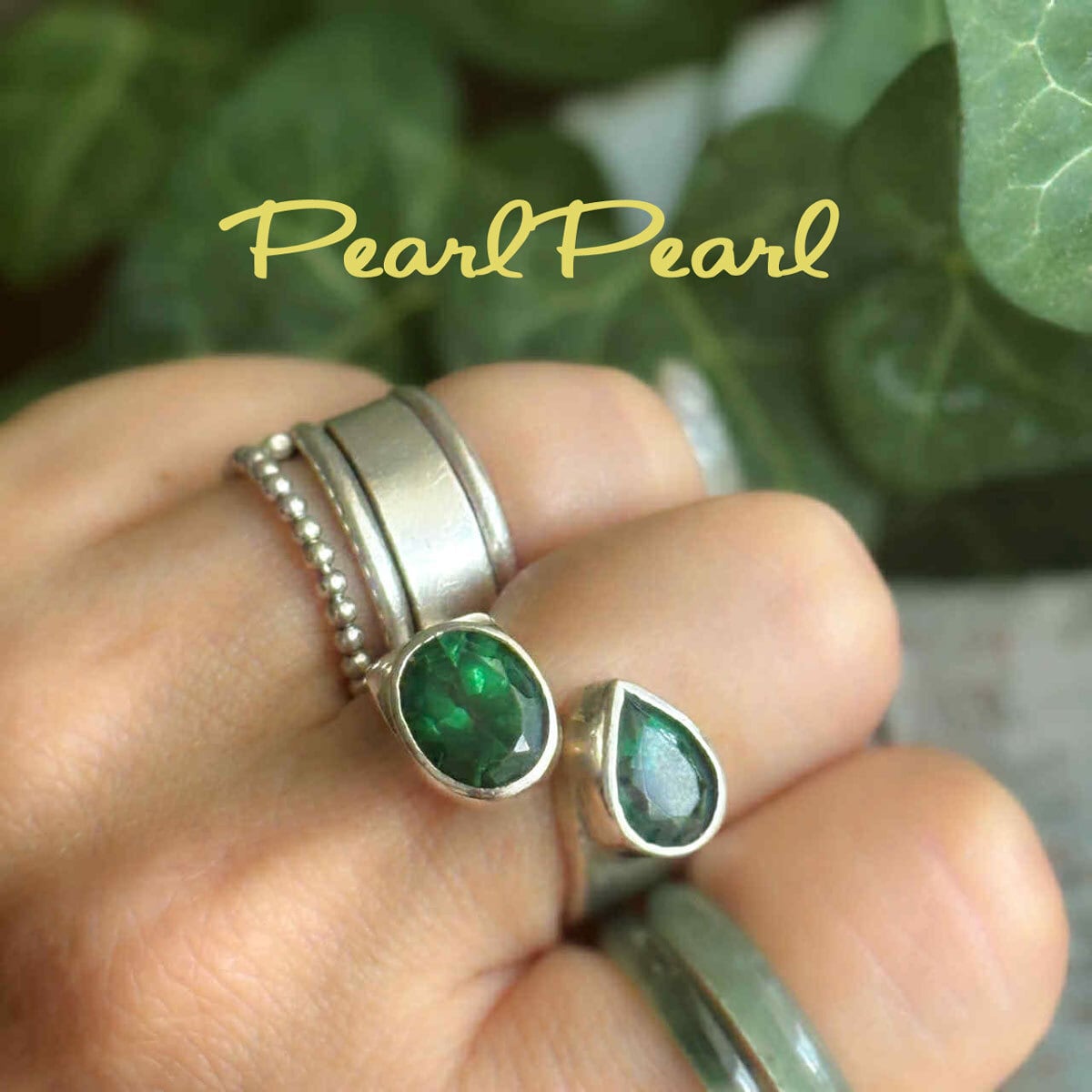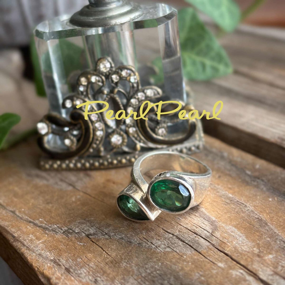 まるでエメラルドのよう*「癒しの石」グリーントパーズダブルリング