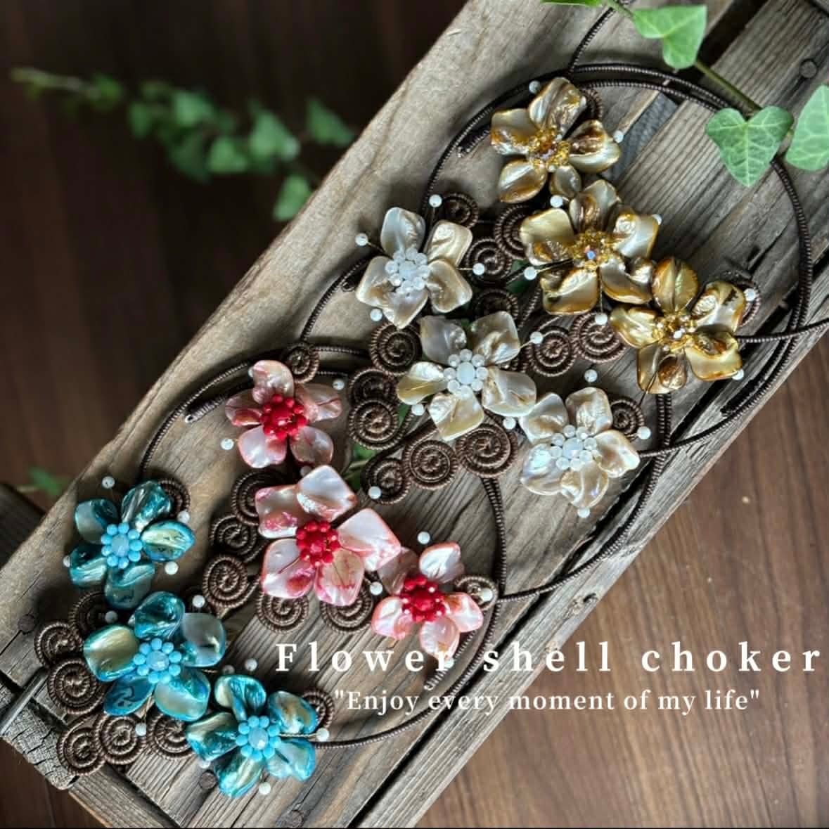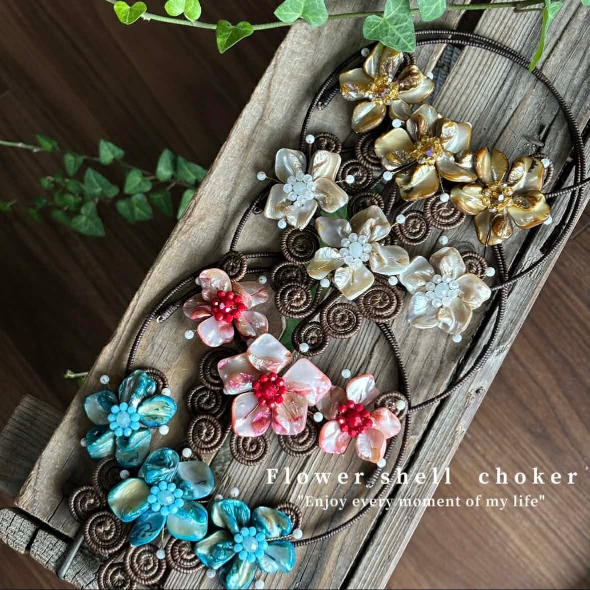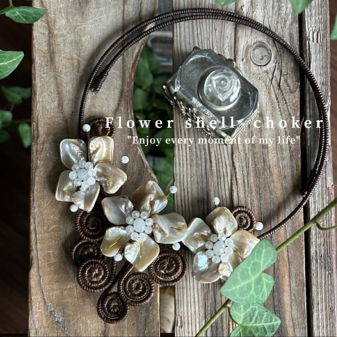 お花が首元を華やかにします*フラワーシェルチョーカー