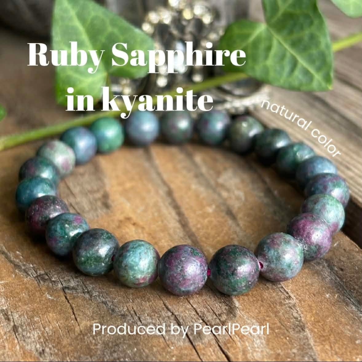 心を引きつける魅力的な色合い、人気のルビー、サファイア、カイヤナイト3つのストーンがひとつに共生した希少な天然石、ルビーインカイヤナイトを使用したブレスレットです!