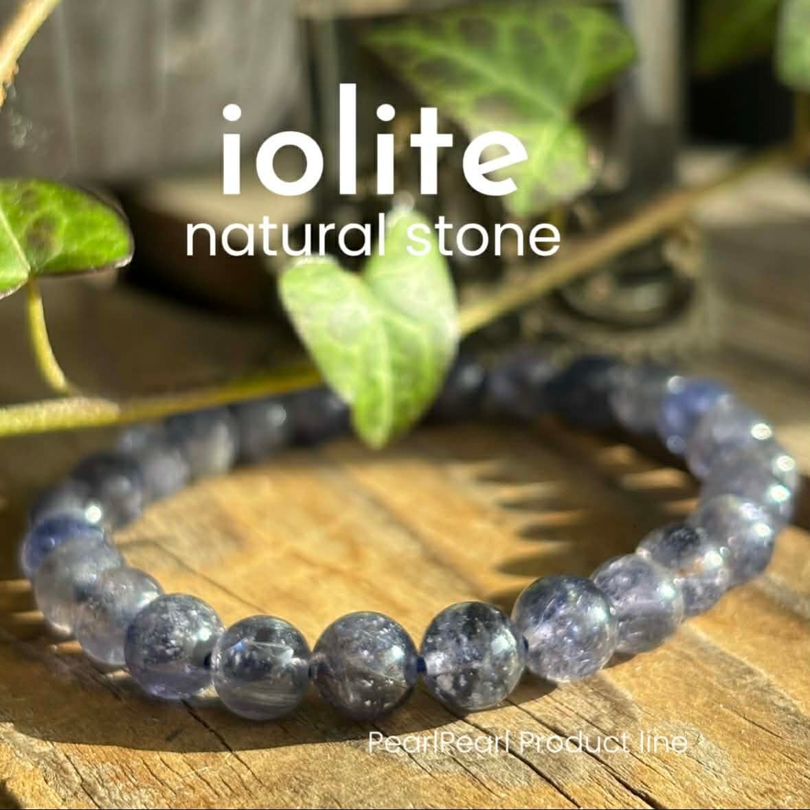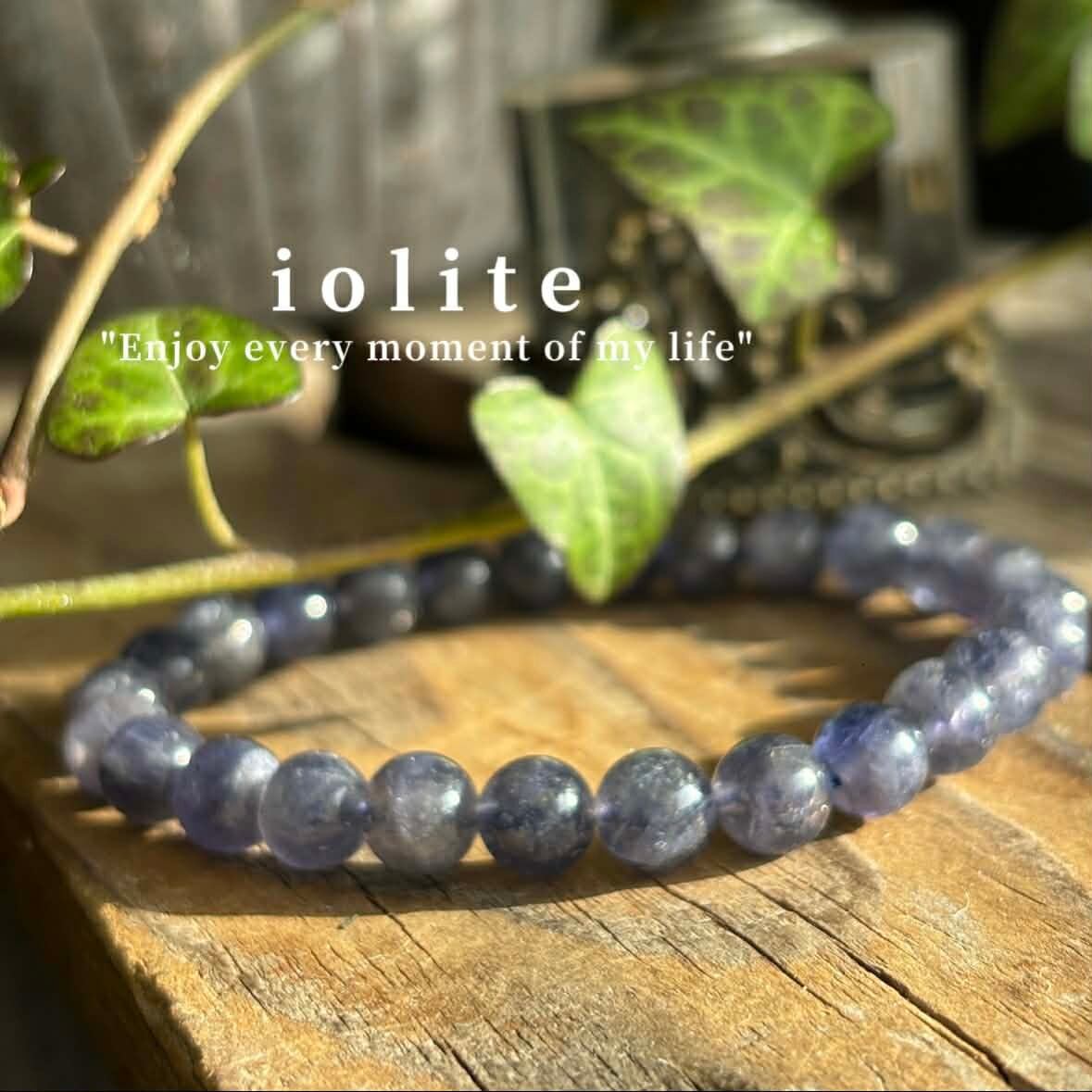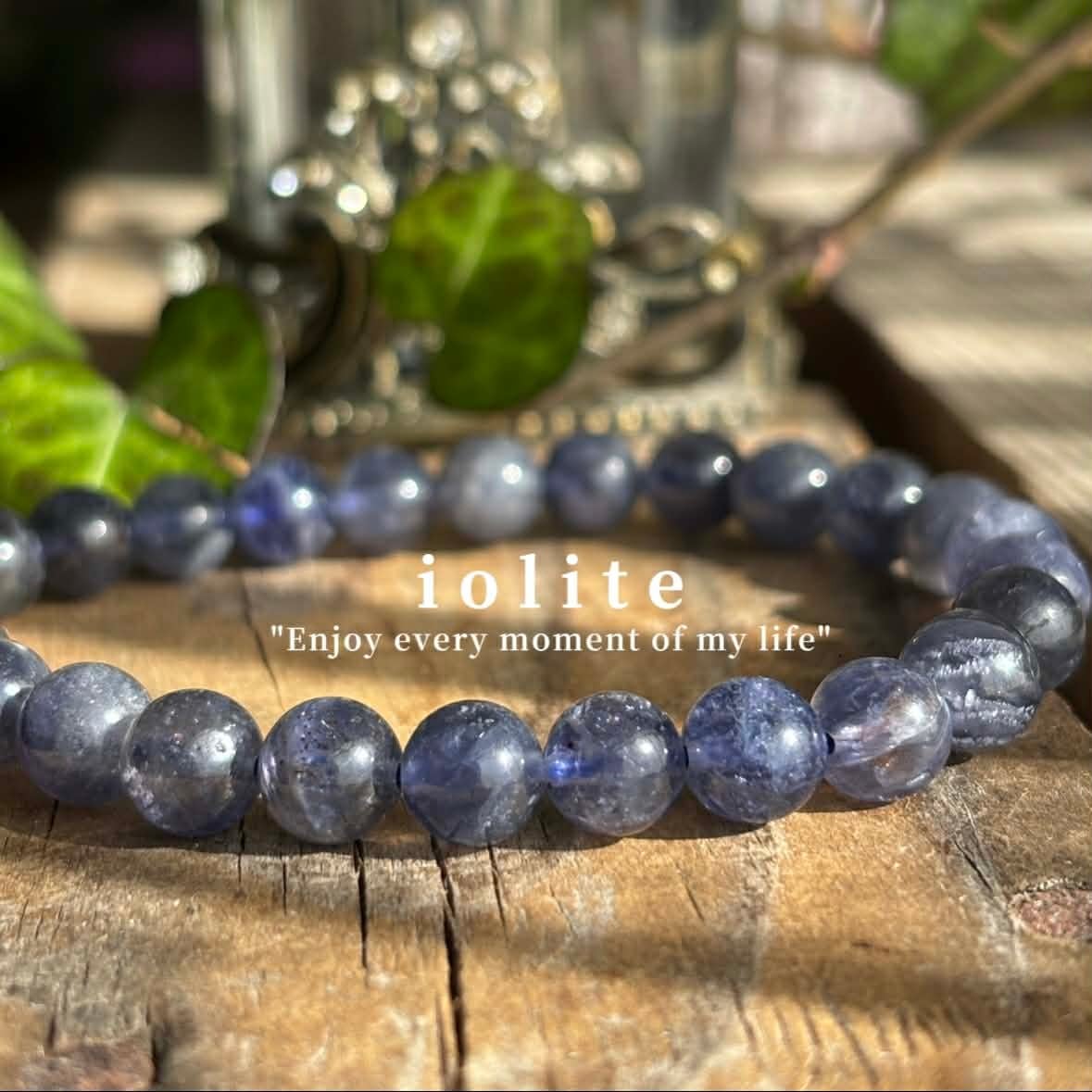 アイオライトは、比較的硬度の高い石ですが、強い衝撃や急激な温度変化には注意が必要です。普段のお手入れは柔らかい布で優しく拭き、直射日光を避けることで、その美しい輝きを保つことができます。日常のスタイルに、そして特別な瞬間に、この素敵なブレスレットを大いに楽しんでください!
