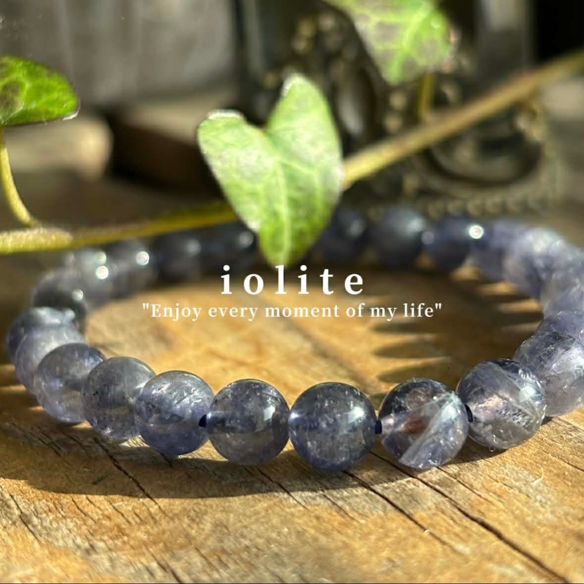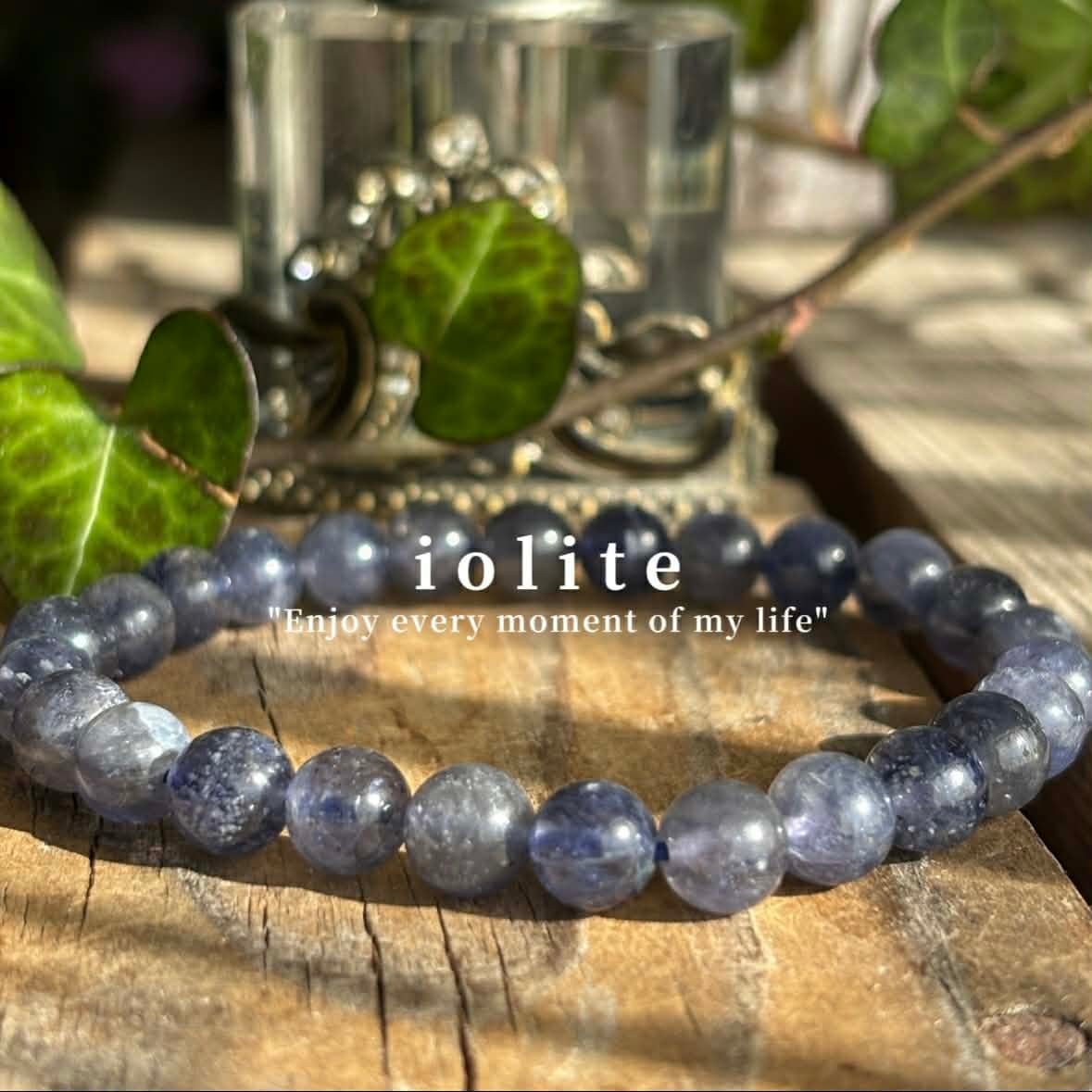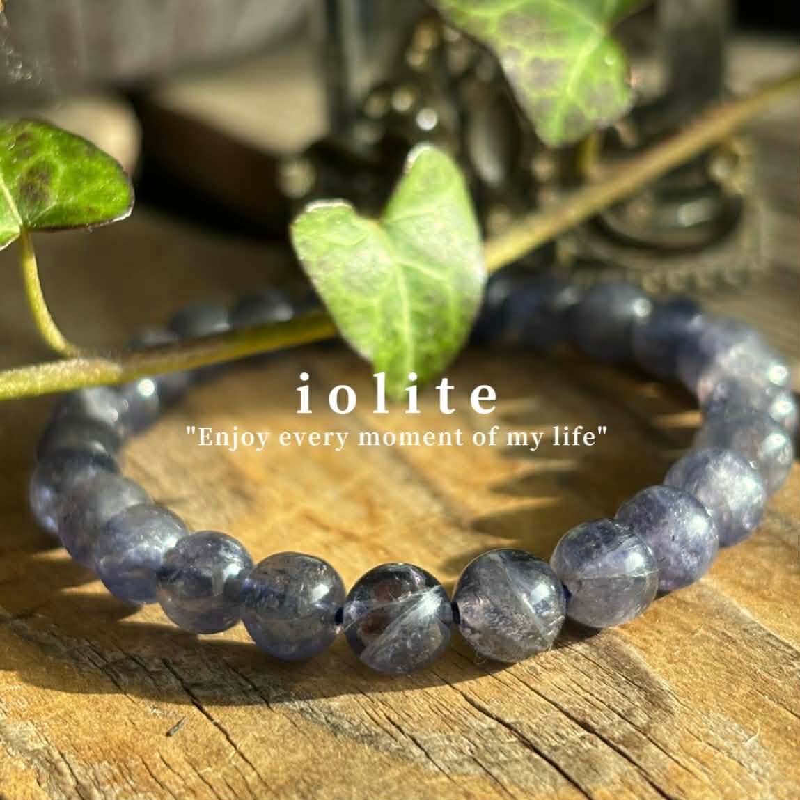 アイオライトは、比較的硬度の高い石ですが、強い衝撃や急激な温度変化には注意が必要です。普段のお手入れは柔らかい布で優しく拭き、直射日光を避けることで、その美しい輝きを保つことができます。日常のスタイルに、そして特別な瞬間に、この素敵なブレスレットを大いに楽しんでください!