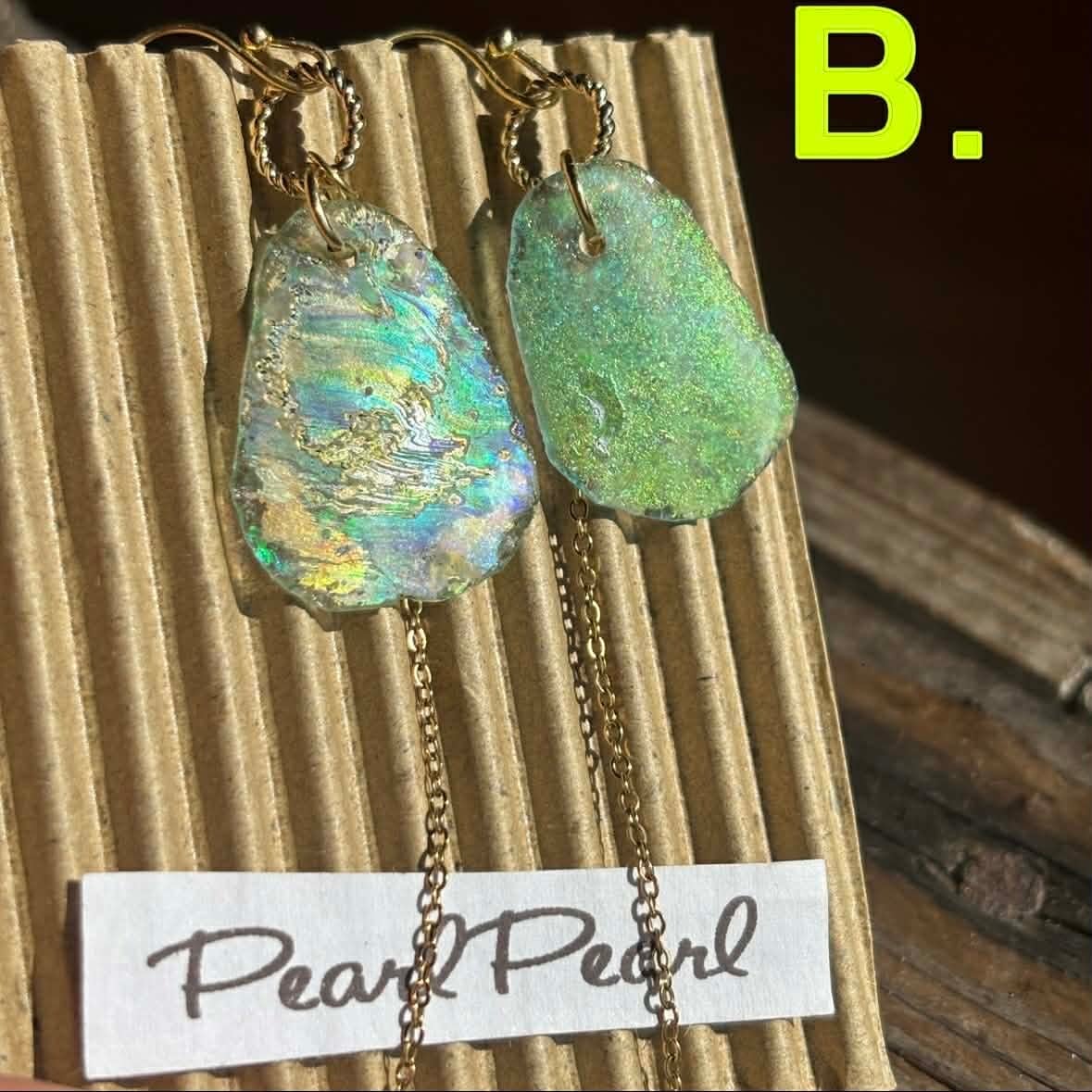 このピアスは、光の角度によって唯一無二の様々な色を映し出し、正に虹のよう、まるでオパールのような輝きで、あなたの耳元を華やかに彩ります。