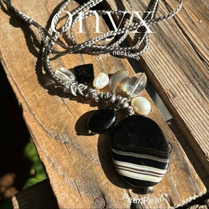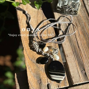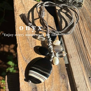 オニキス(縞瑪瑙)TOP*編み編みフリーサイズネックレス