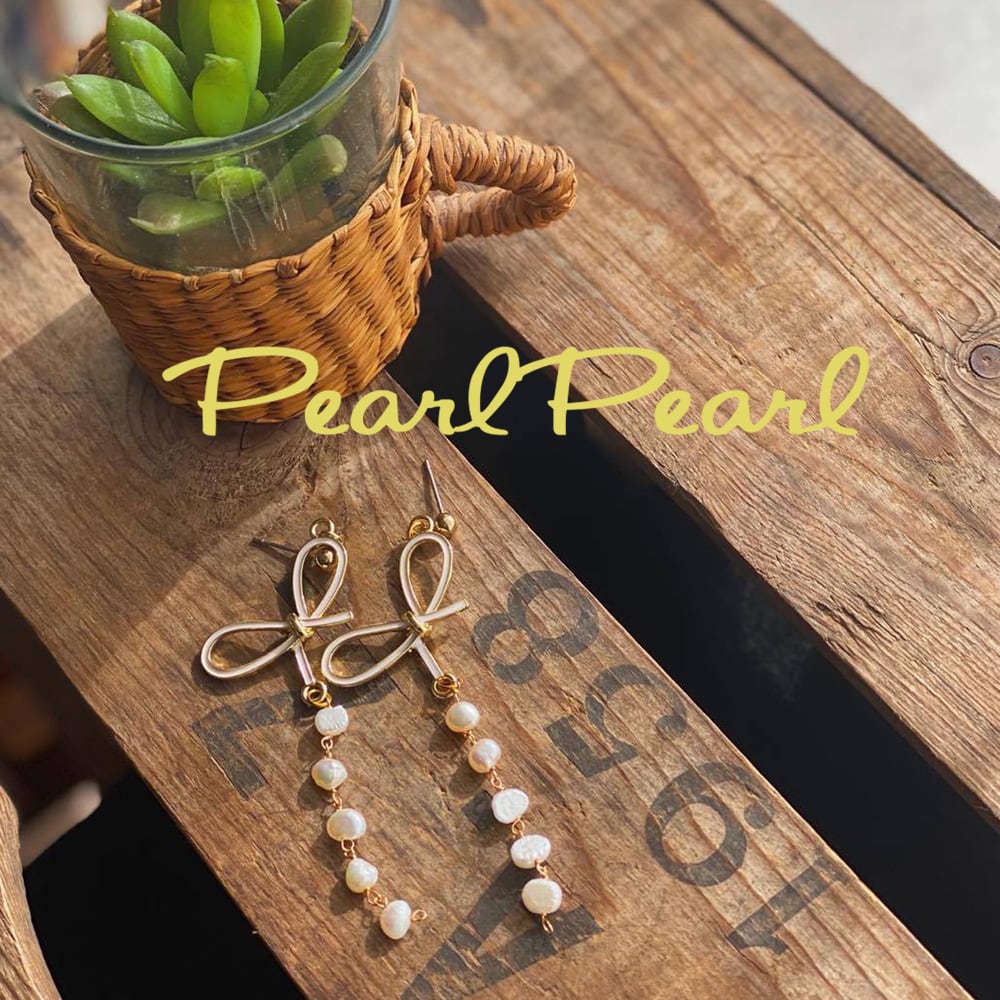リボンパーツと合わせて揺れる可愛いベビー淡水パールピアスがです。