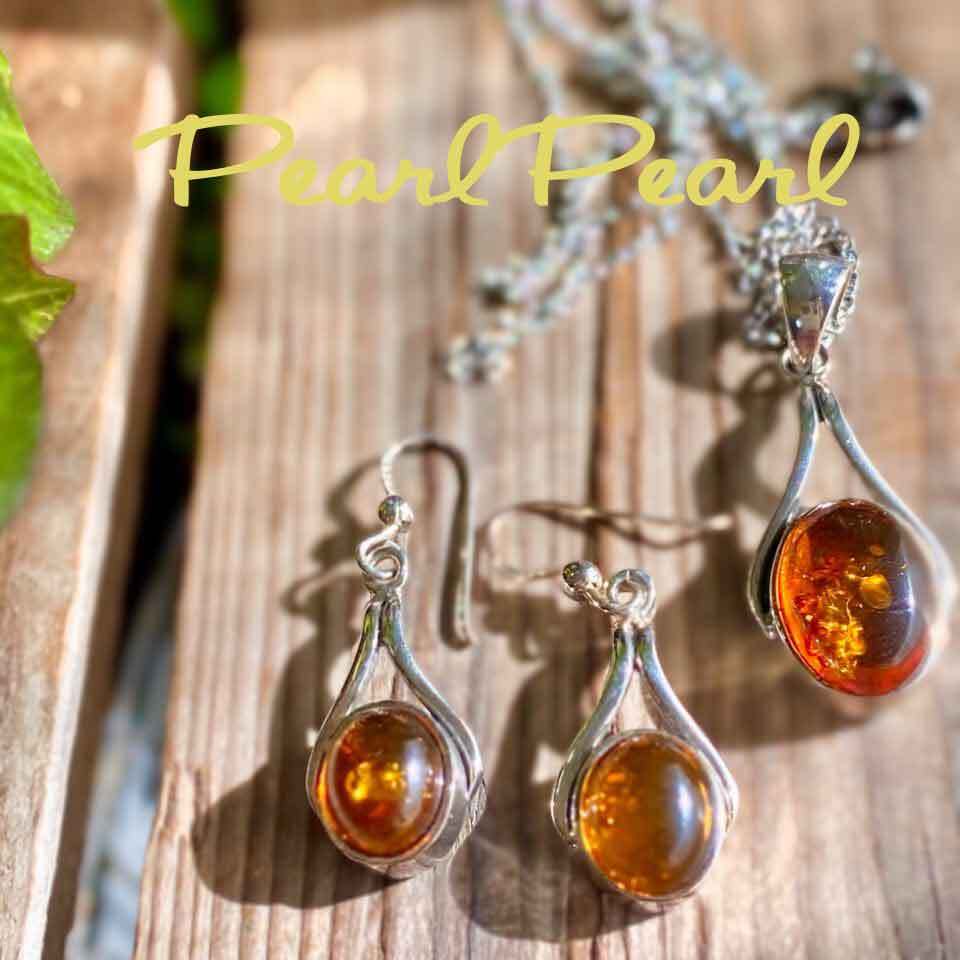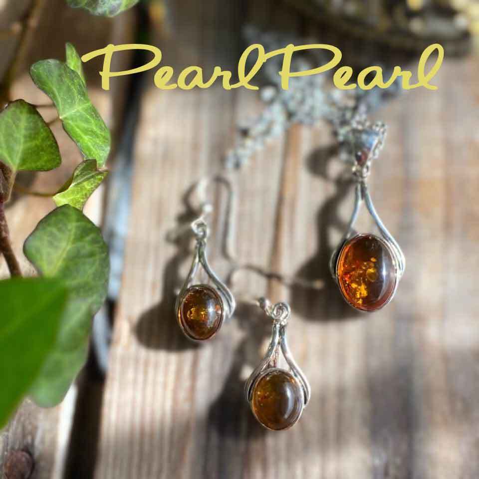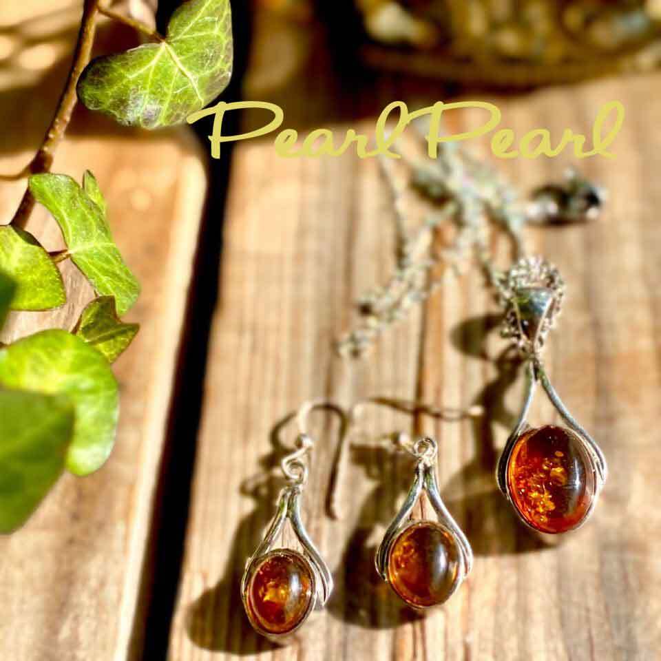 バルティックアンバー(琥珀)の ペンダントトップとピアスのSETです。