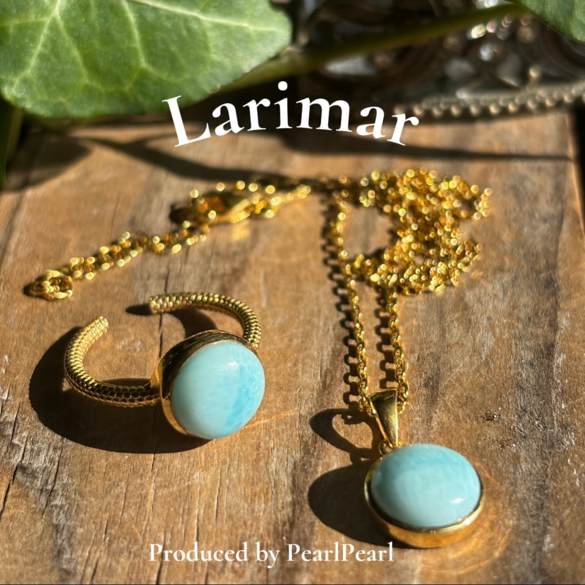 三大ヒーリングストーンの一つである、ラリマーのリングとネックレス。
