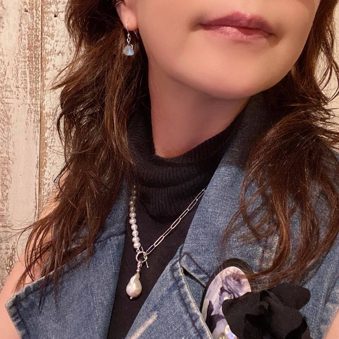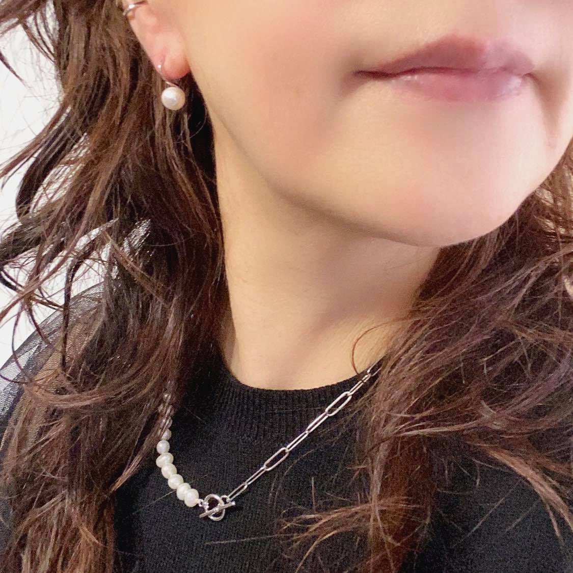 今年のトレンド淡水パールとチェーンが切り替えデザインのネックレスです。