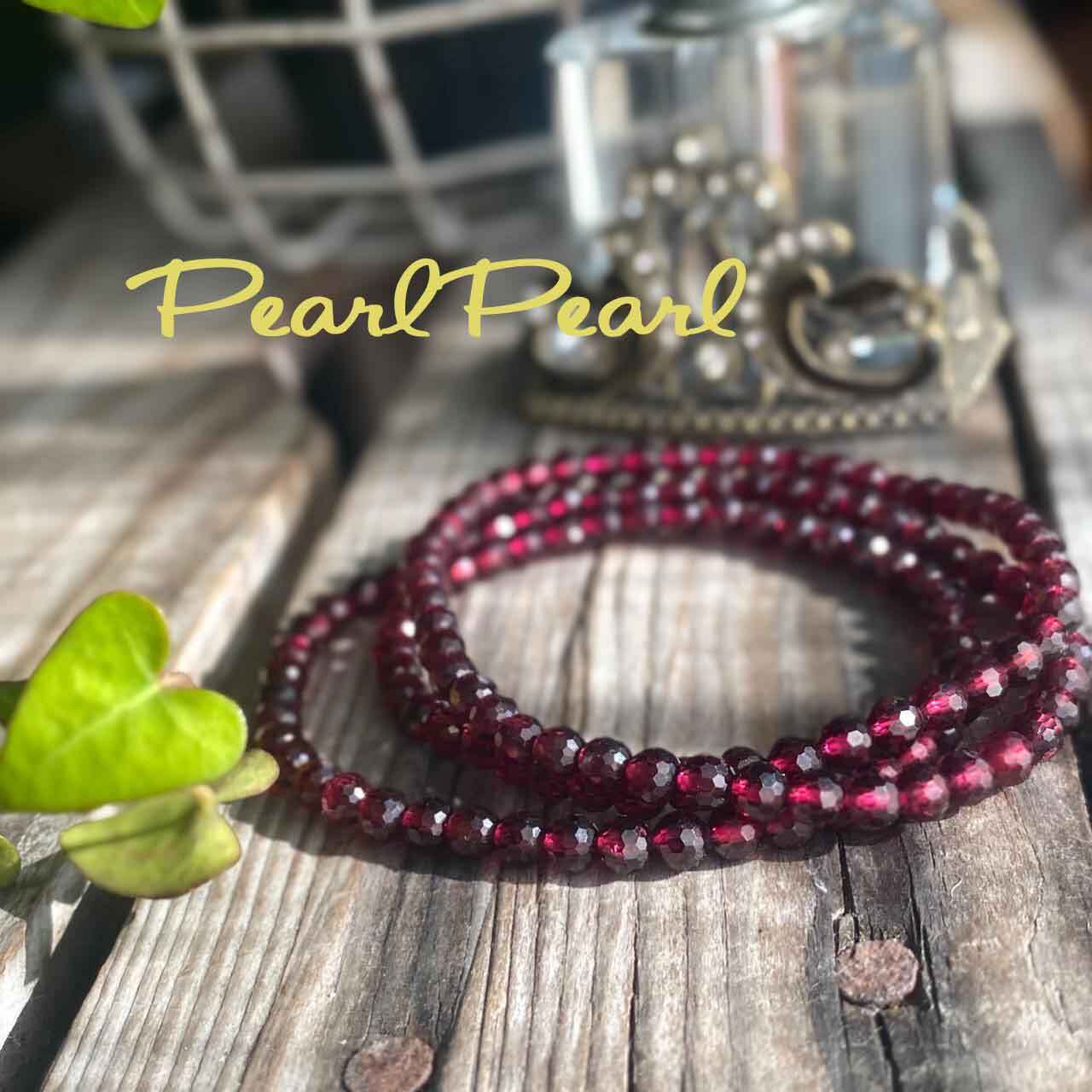 ザクロのような鮮やかな赤と、綺麗にカットされたビーズがキラキラ輝き上品さを演出します。3連で身につけることで、より華やかさが増します。