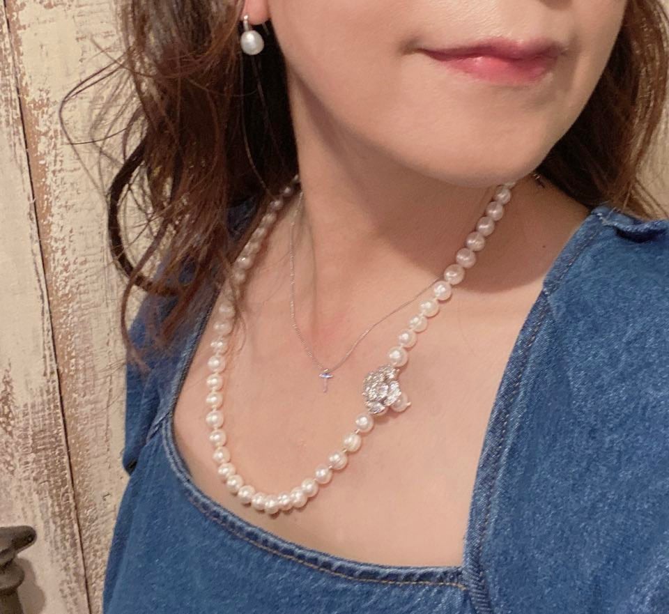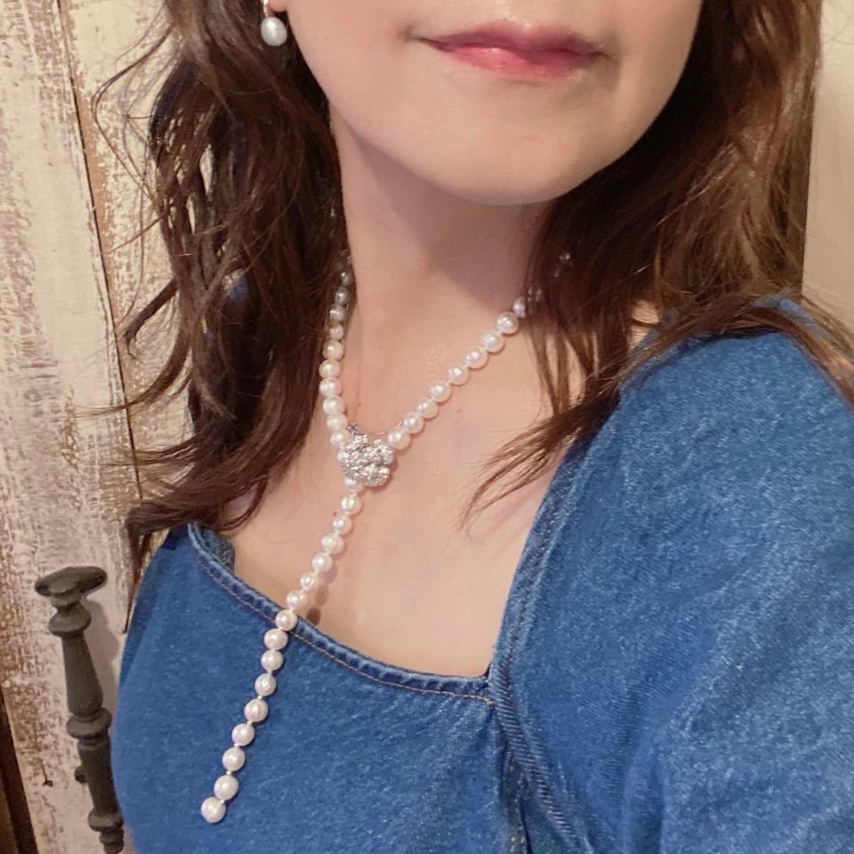 Y字ネックレスは長さは、お洋服に合わせて‥後ろに回してアップにしても素敵。