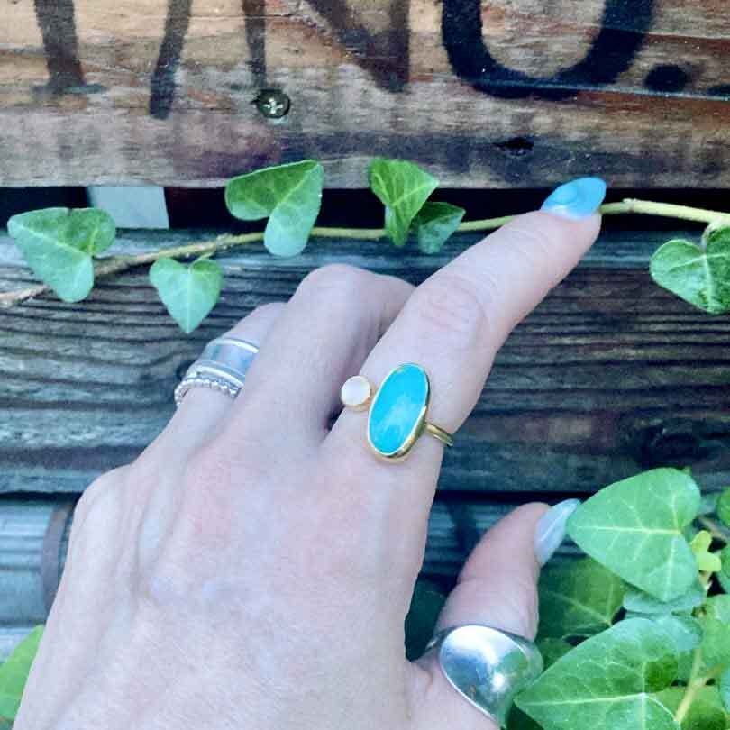 手元を華やかに彩る*ターコイズとムーンストーンのフリーサイズリング