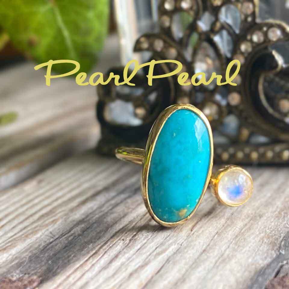 とてもブルーが綺麗なターコイズと、小さいながらもしっかり光り主張するムーンストーンが
