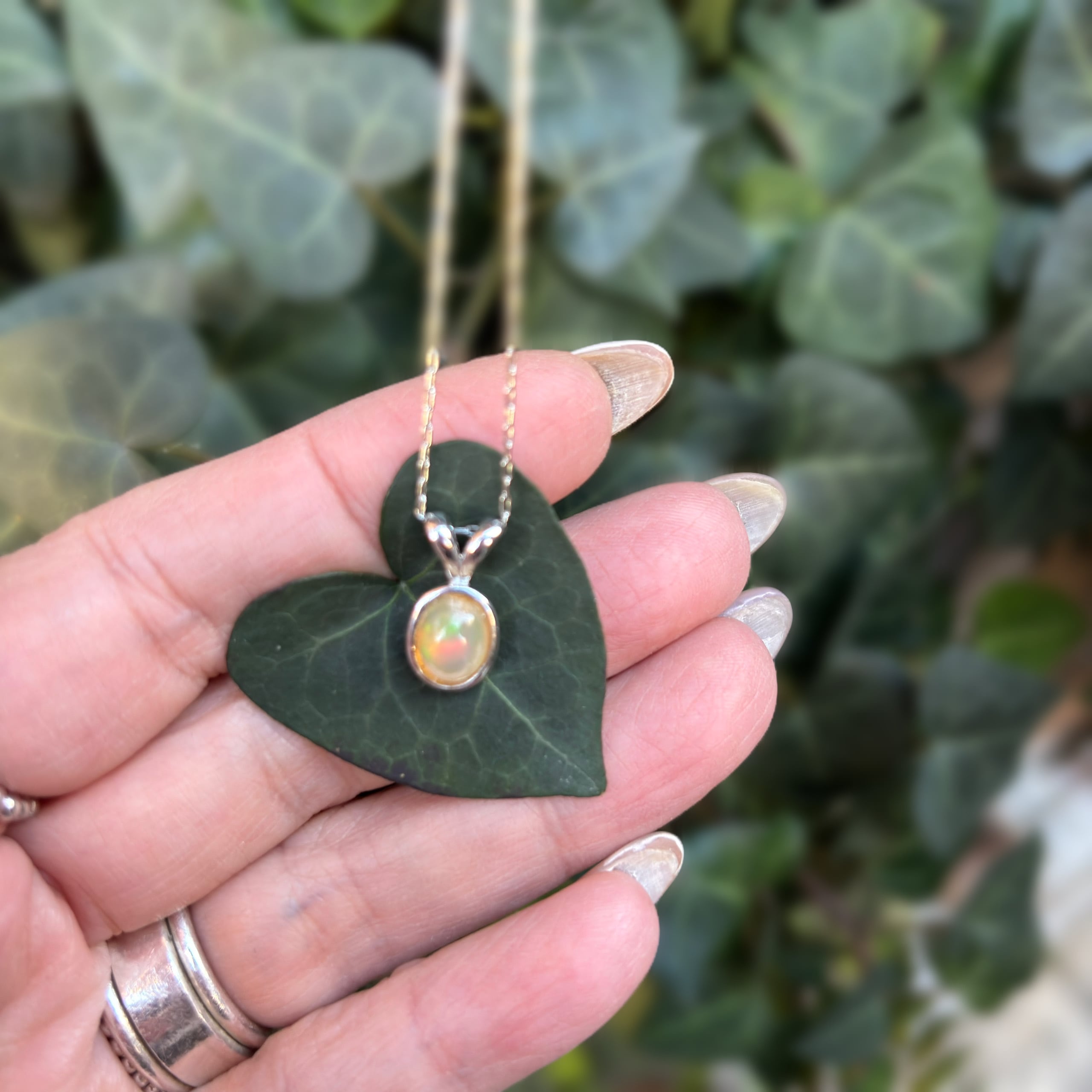 オパールに遊色が現れるのは、オパールの内部でシリカ球が密接に並んでおり、これらに光を当てると、回折と干渉が生じ、虹色のような遊色を見せてくれるのだそうです。