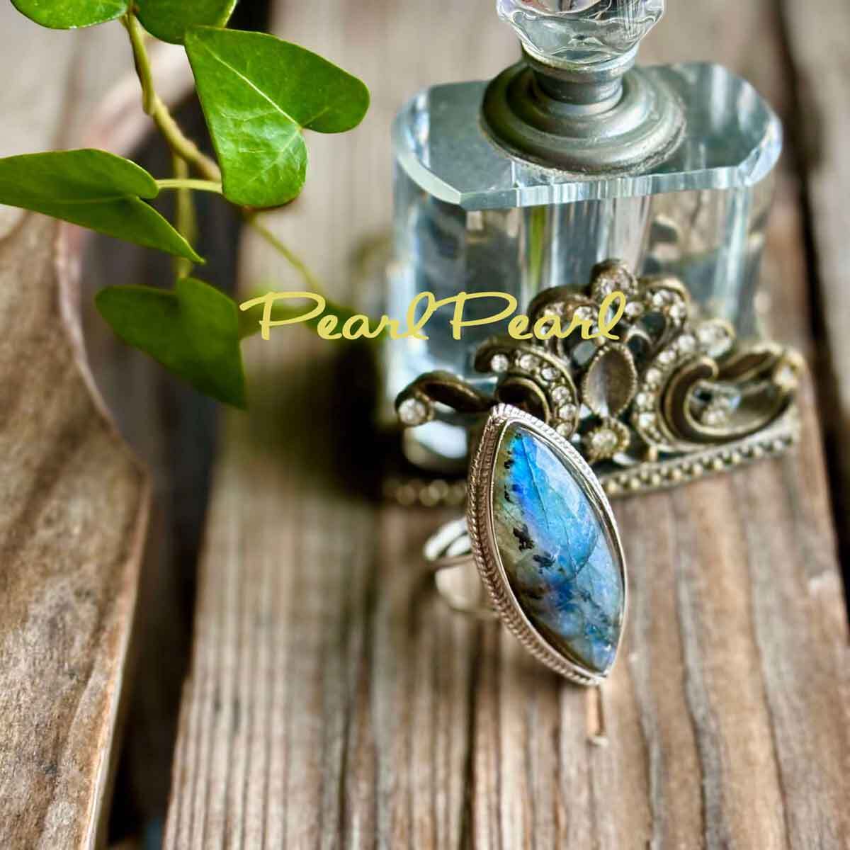 しなやかなアーモンドシェイプは指先を華奢に見せてくれる効果もあり、女性らしさを際立たせます。このラブラドライトリングが、あなたの指先を美しく彩り、特別な日々を演出してくれることでしょう。